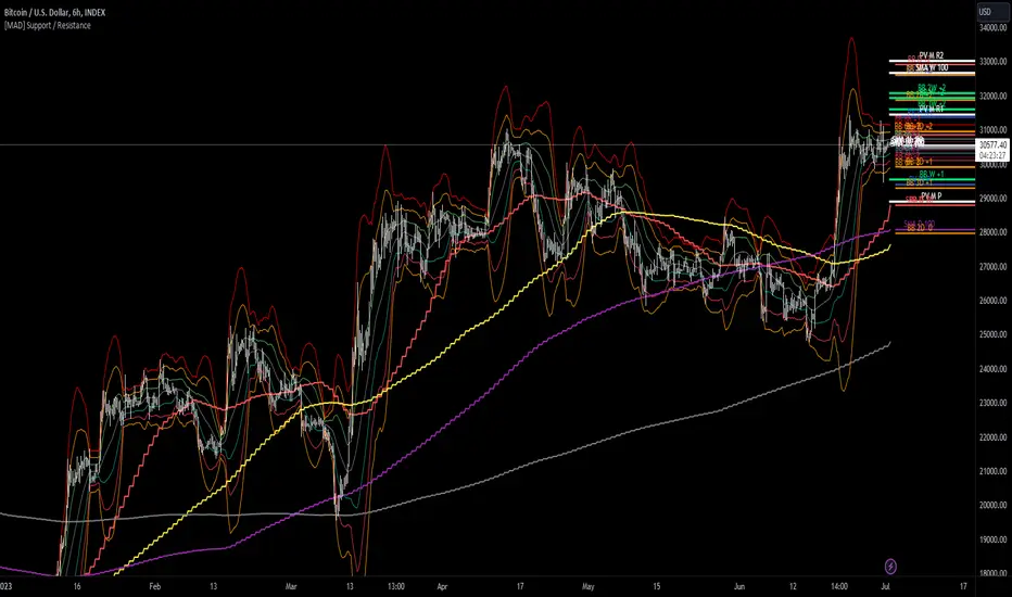 Bollinger Bands: The indicator supports 6 different timeframes for Bollinger Bands. Users can customize the length of the Bollinger Bands for each timeframe and choose whether to display levels and plots.
