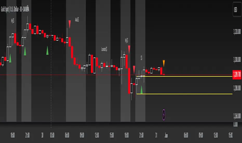 Clearly visualize major trading sessions — New York, London Open, Asian, and Session Close — with customizable colors and background shading for better market context.