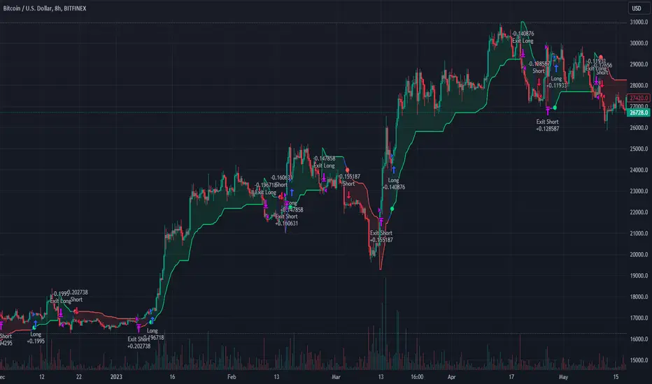 Exit Condition: Dynamic trailing stops are used for exits. If the trend does not continue as indicated by the KNN prediction and SuperTrend direction, an exit signal is generated.