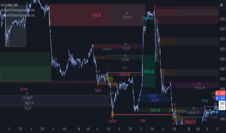 [AlbaTherium] MTF External Ranges Analysis - ERA - Orion for Smart Money Concepts as “The Orion” indicator captures consensus among scalpers, day traders , swing traders, and investors, turning key areas into major opportunities. It allows for precise identification of areas of interest by analyzing the convergence of actions from various market participants. In short, Orion is crucial for detecting and leveraging the most promising points of convergence in the market.