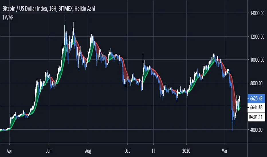 Here we are experimenting with using TWAP for trend analysis. It appears to work better than VWAP on lower timeframes.