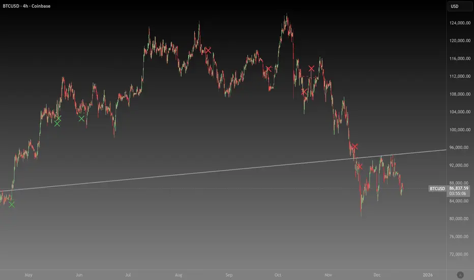 Bearish Cross: The price must close below the resistance trendline - (0.5 * ATR).