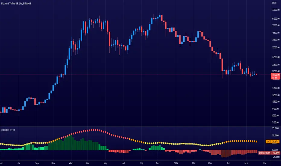 This DMI I modified to see the trend more clearly, and the ADX line changes according to the trend force, which is perfectly configurable, the configuration I left my default configuration, in case you want to modify it because you see the trend in different values, feel free, and basically the columns are the average of DI and also indicate the trend more clearly.