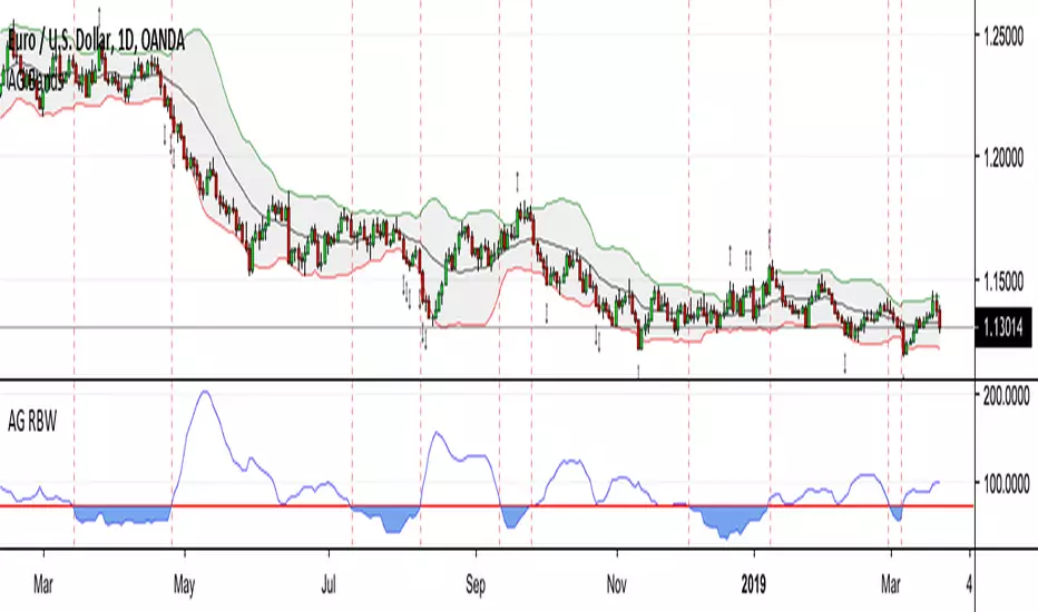 "After periods of low volatility come periods of high volatility" is a well-known theory, and this indicator helps to quickly and easily identify when markets are in low volatility states. Another name for the information our indicator shows is known as the "Bollinger squeeze". Trading breakouts of this squeeze in Bands can be a profitable strategy, given one can filter the false breakouts adequately.