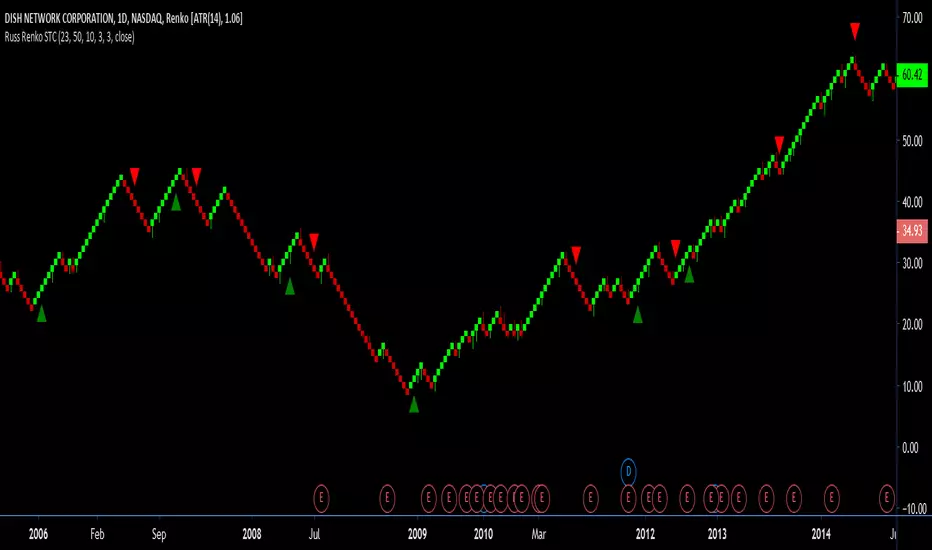 This indicator is a Renko version of the Schaff Trend Cycle (STC). It is not meant to be used alone but as confirmation tool. Buy when green arrow appears, short when red arrow appears if your other indicators agree.