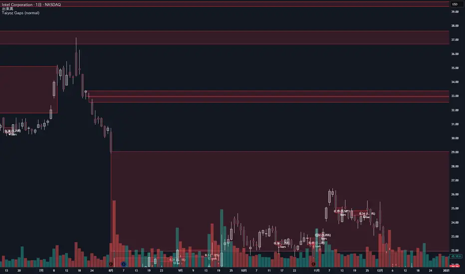 Tyoz Gaps highlights “gaps” between yesterday’s close and today’s open directly on your chart. A gap occurs when the opening price is significantly above or below the prior bar’s close. By drawing persistent boxes around each gap, you can instantly see where price left a void and monitor when (or if) that void gets completely filled.