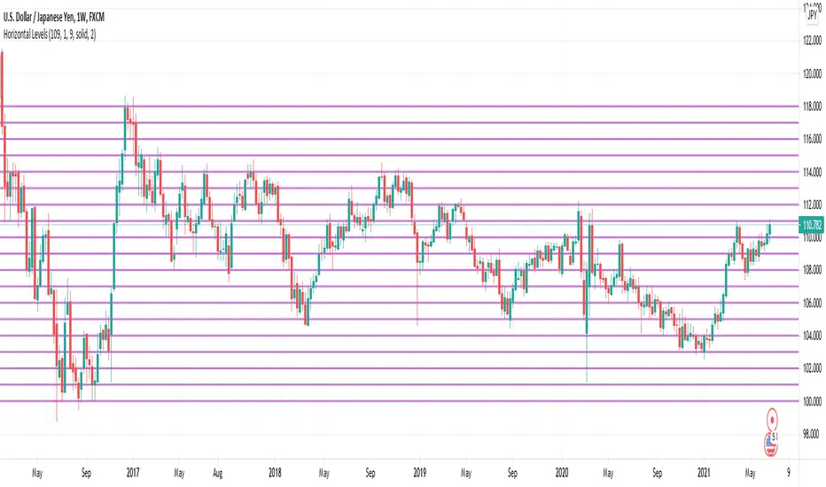 This script draws horizontal levels onto a chart. Unlike existing scripts, this one allows the configuration of the level number, starting level, and level distance.