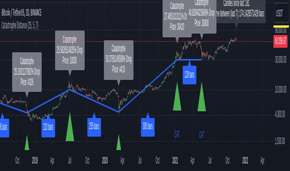 Catastrophe Distance is a tool to visually explore the time between catastrophic price moves.