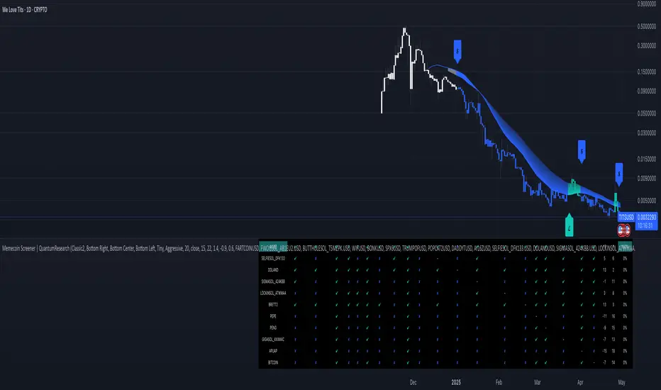 The Memecoin Screener is a specialized multi-asset relative strength tool designed to track, compare, and rank up to 10 different memecoins in real-time. Built for degens and serious meme investors alike, this screener goes beyond price actionโanalyzing inter-asset relative momentum using a proprietary ARSI-based strength scoring system.