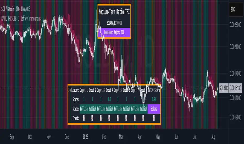 Medium-Term Trend Assessment | Dominant Major Detector: The SOLBTC Ratio TPI is a medium-term trend-following indicator designed to measure the relative strength between Solana and Bitcoin — two of the most influential assets in the crypto market. By analyzing the SOLBTC ratio, this tool identifies which of the two is currently the dominant major in the market cycle.