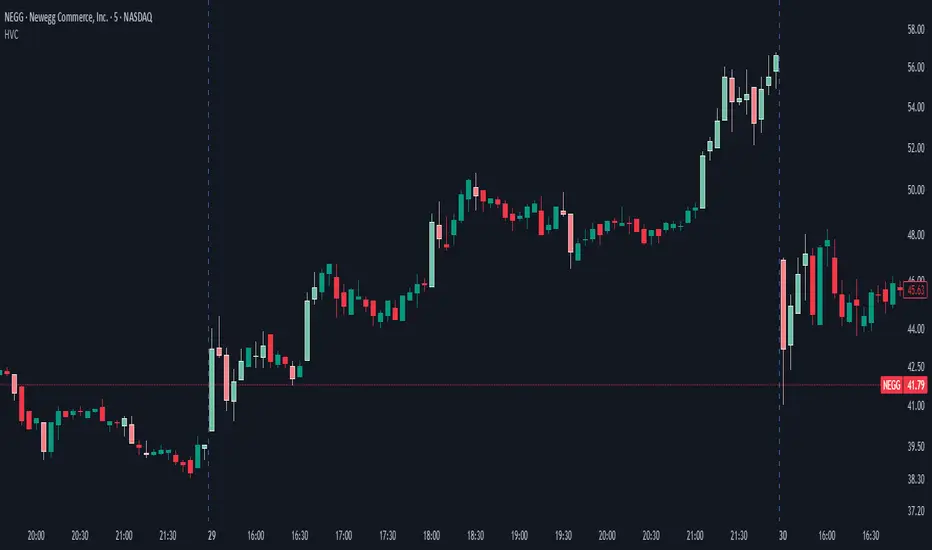 Highlights candles in chart with Volume > 1.4 * last 30 candles average volume.
