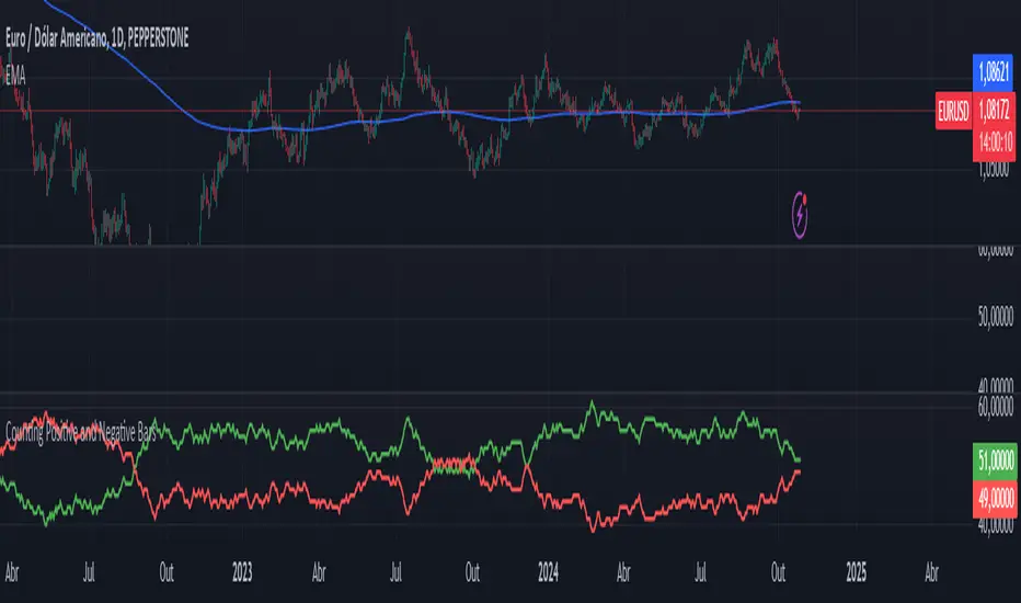 Counting Positive and Negative Bars: It goes through a specified number of bars and counts how many are positive (close above the previous value) and how many are negative (close below the previous value).