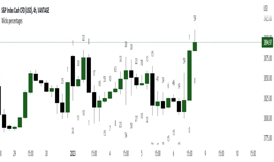 This indicator shows the percentage of the upper and lower wicks in reference to the entire candle.