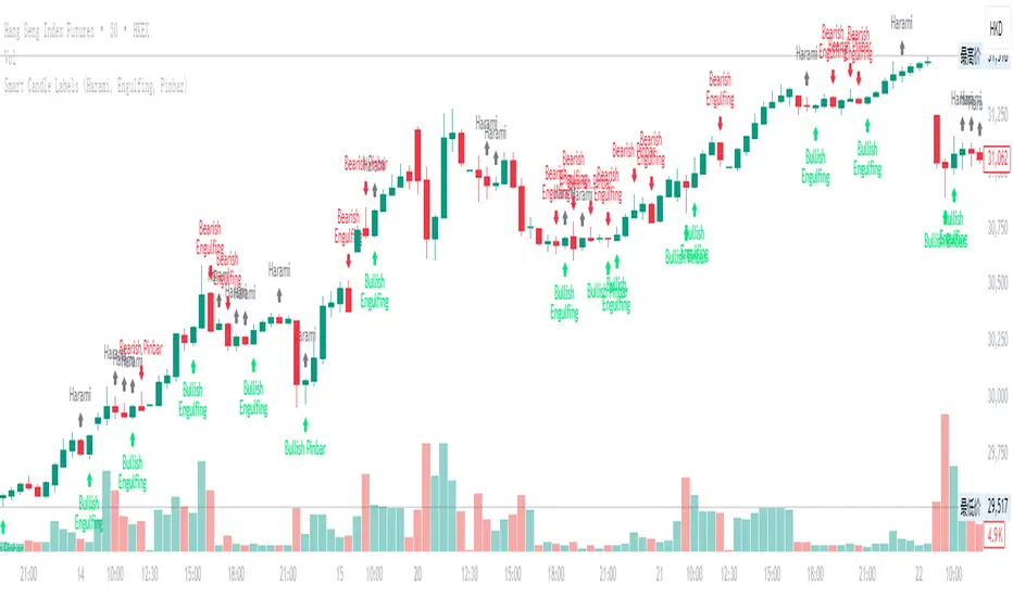 Smart Candle Labels (Harami, Engulfing, Pinbar)
