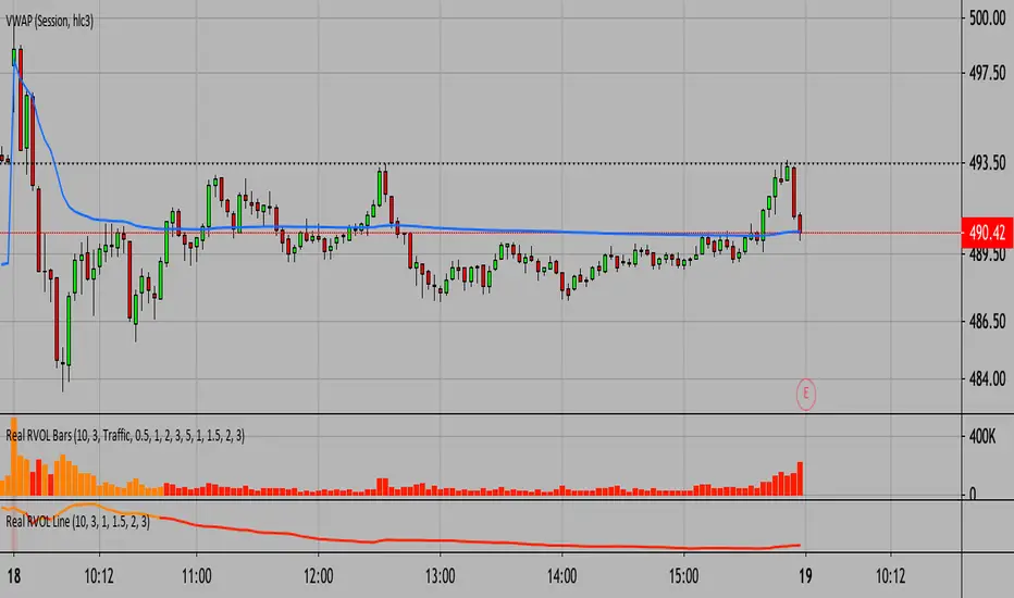 The Real Relative Volume - Bar Indicator shows you the current relative volume. Our Algo uses the actual cumulative volume of the current day at the respective (current) time and compares it with the historical average volume at the same time. This gives us a correct picture of the current strength. With the help of the indicator, we can also see by the color change of the volume bars whether this strength increases, remains the same, or loses power quickly. Unlike other scripts, we use an advanced method that recognizes the current position on the day and does not split the session into equal parts. Advantage: The indicator also works in crypto, forex, foreign stock markets, indices, etc.