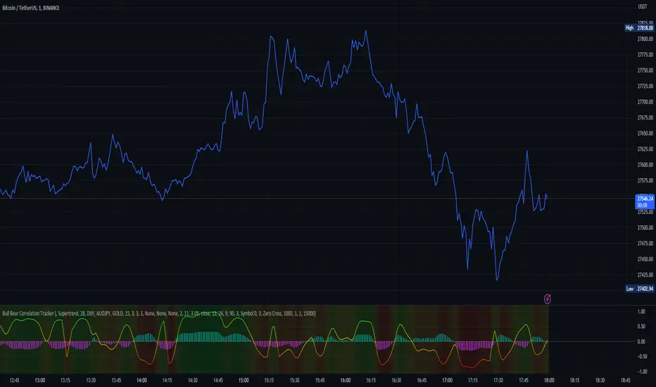 The Bull Bear Correlation Tracker is a versatile indicator designed to help traders identify the direction and strength of market trends by comparing the price action of multiple assets. It is particularly useful for those who are familiar with the carry trade principle, as it can detect when positively or negatively correlated assets move in favor or against the asset being traded. This indicator can be used for various markets, including crypto and forex, by simply adjusting the default options.