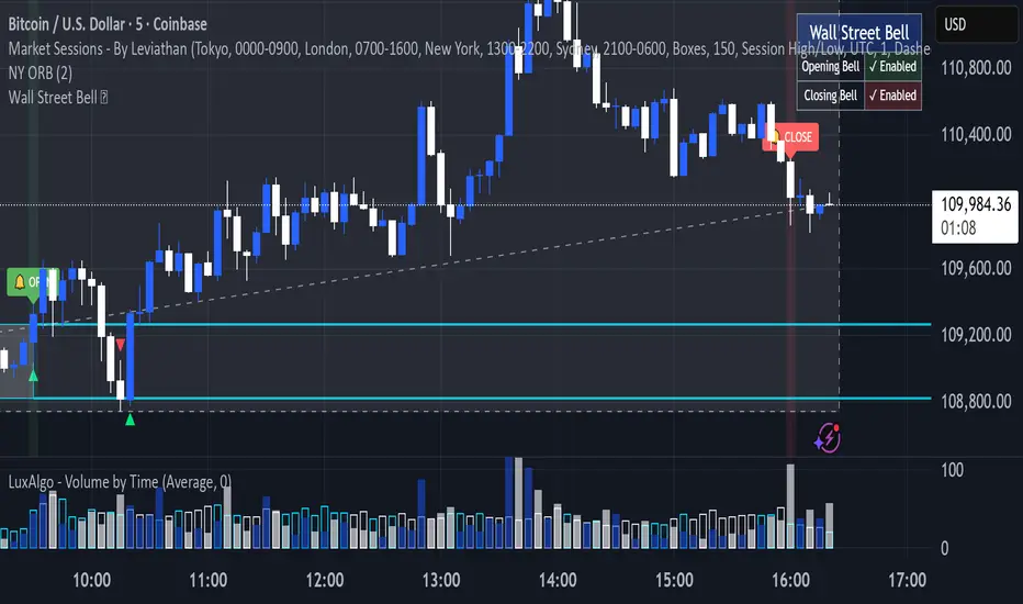 โ Visual markers - Shows ๐ labels on chart when bells ring