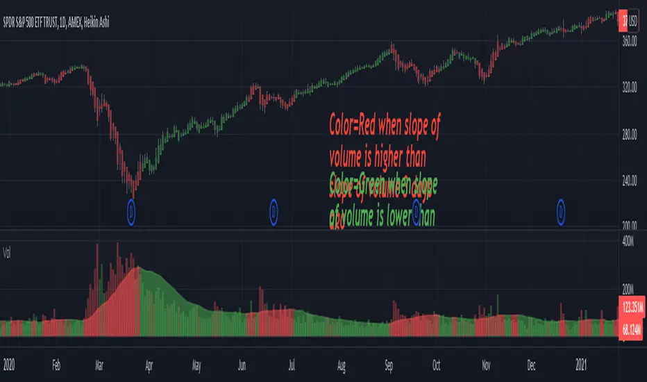 Using the slope of the 20 Period Volume Moving Averages to detect trend changes in Volume