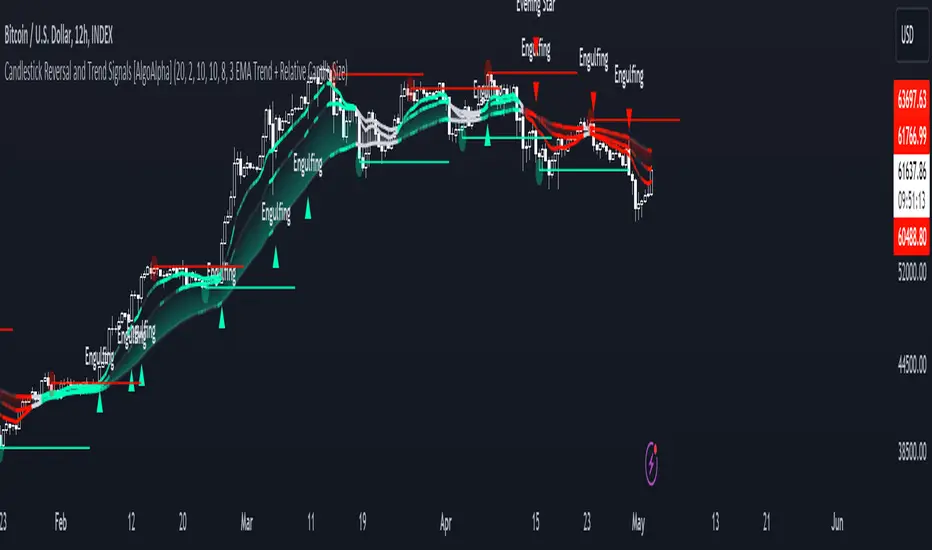 🚀 Unleash your charting capabilities with the Candlestick Reversal and Trend Signals indicator by AlgoAlpha, your go-to tool for spotting pivotal market movements! This script enhances your trading experience by identifying key candlestick patterns and trend changes, perfect for traders aiming for precision in their technical analysis.