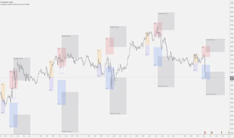 The 2 gray box correspond to the high probability of high of a bull day and low of a bear day. It is good area for a end of the day reversal.