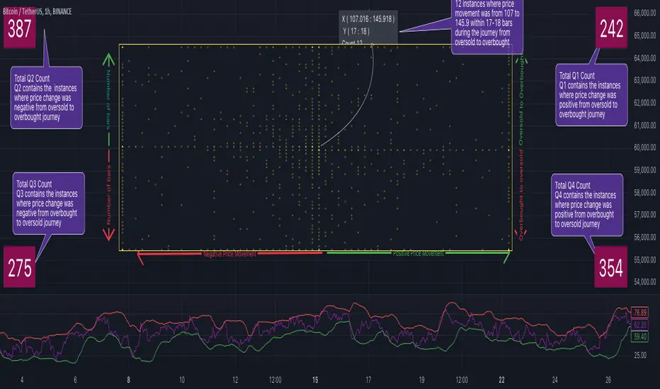 - Measure the price and bar movement from overbought to oversold and vice versa and plot them on the chart.