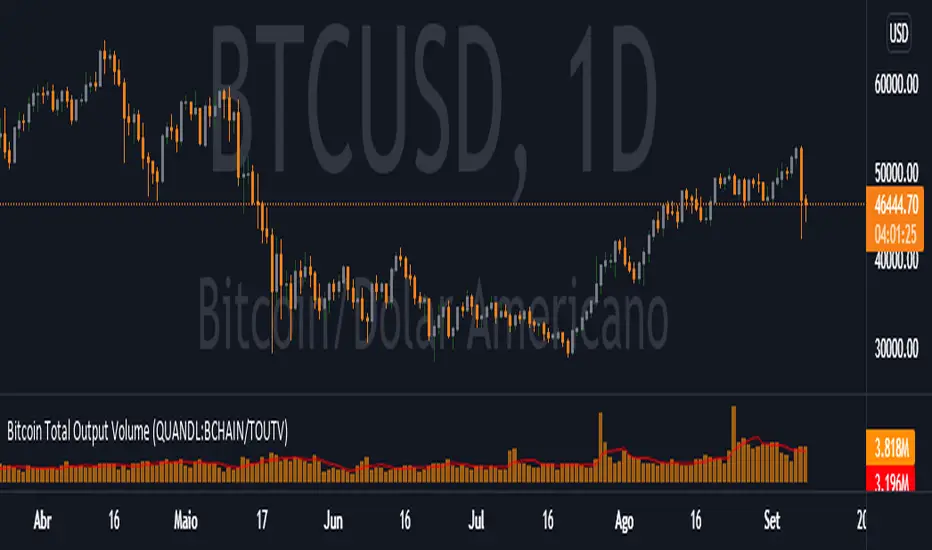 Telah dikemas kini Bitcoin Total Output Volume (QUANDL:BCHAIN/TOUTV)