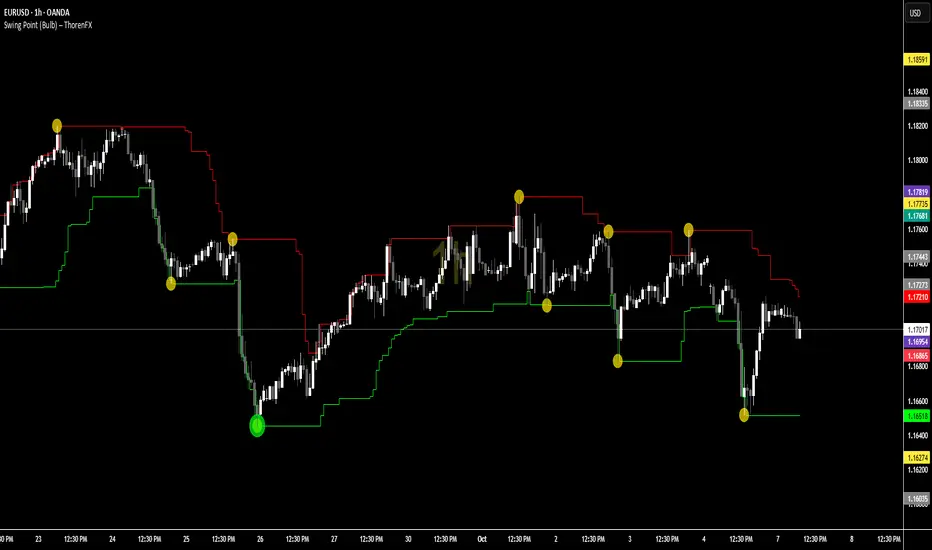 The Swing Point (Bulb) indicator is a dual-module market structure tool designed to identify both swing reversals and structural extremes in real time.