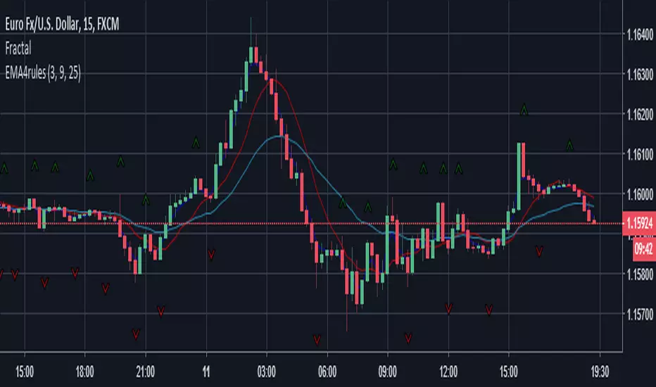 This script is one of those that complements the strategy of the 4 rules of Daven Icao, summarizes the MA 9, the EMA 3 and the EMA 25. It is used as confirmation of purchase or sale the crossing of the EMA3 with the MA 9 and the EMA 25 in some cases as take profit since the fractal is also used for the same and for the stop loss. The values can be changed but keep in mind that where the MA 9 will always be an SMA and not an EMA.
