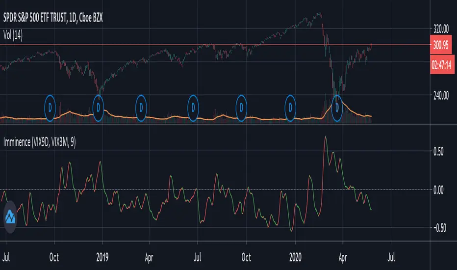 Simple oscillator that takes in implied volatilities at two different timescales for the same security, to determine whether the market expects the next crash to be imminent or "in a few months from now".