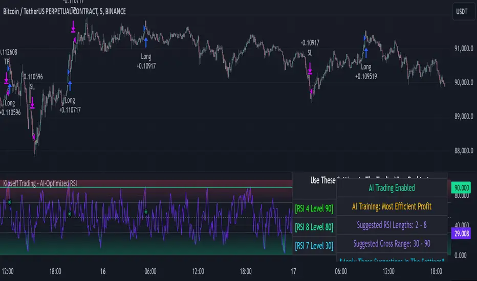 - RSI Lengths Range: Choose the range of RSI periods to test and find the best one.The AI will find the best RSI period for you.