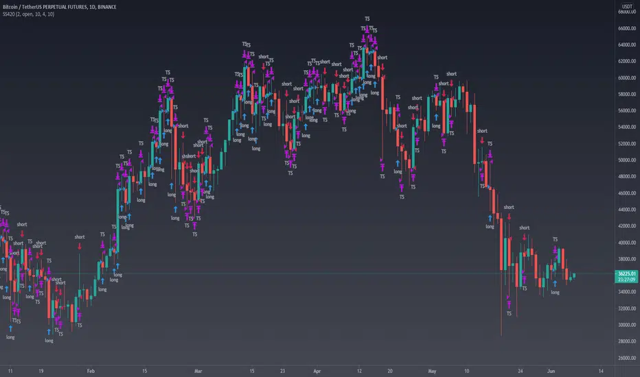 This Strategy by SeaSide420 uses IchiMoku, Engulfing candles and 3 moving averages to find entry to buy and sell orders. It will hold buys and sells at the same time, it will close orders by StopLoss, or Trailing StopLoss or Target Profit. In the example chart here, only the trailing stop is active. It does have commission already included in this result. The initial test equity is set to 1 (1 BTC) so if you use this on say, a FOREX pair, you might want to check your settings, for example, set the initial equity to 100,000 USD as it normally is. I set this to 1 BTC to show that Holding 1 BTC for 2 years would not be as profitable as trading 1 BTC with this strategy for 2 years. The commission level is the same as Binance (0.1%), and the example pair is a Binance instrument, where Bitcoin trades can be in and out this way (CFD). Here it is shown on Daily chart, and with other timeframes/pairs, you may need to adjust the settings (MA period etc). New settings are achieved by you testing them yourself. This is published as an experimental script for use through API to do Automated trading on crypto exchanges. Questions welcome. Strategy free to use, Script private (PM me about it) I have not tested the alerts, but i did include alerts when open and close orders. Let me know if it works or not.