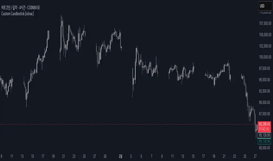 This indicator customizes the appearance of candlesticks by using a dark gray theme for better visibility.