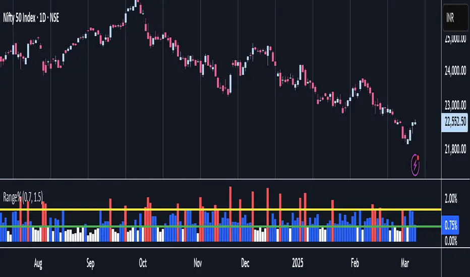If the Range% is below low line candles will turn White and If Range% is above the High Line Candles will turn Red.