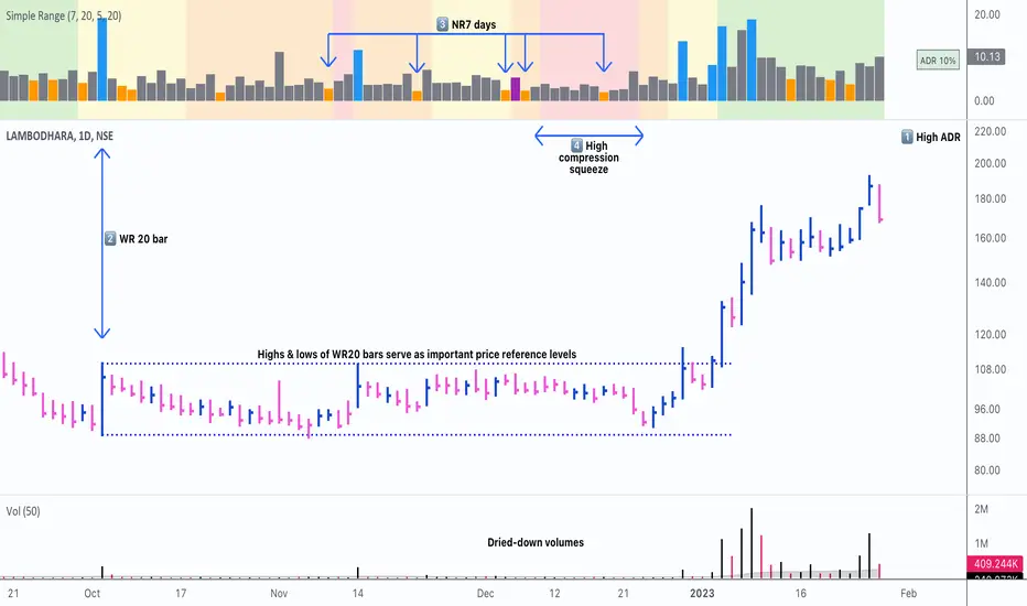 1. Narrow-range days (NR7) & Wide-range Days (WR20) - as plot columns