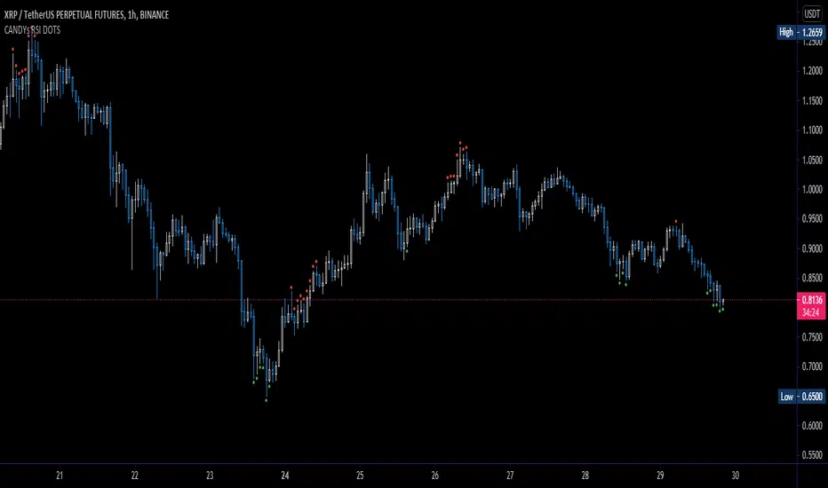 This Indicator will display dots when the stochastic RSI is either below or above the oversold/overbought threshold.