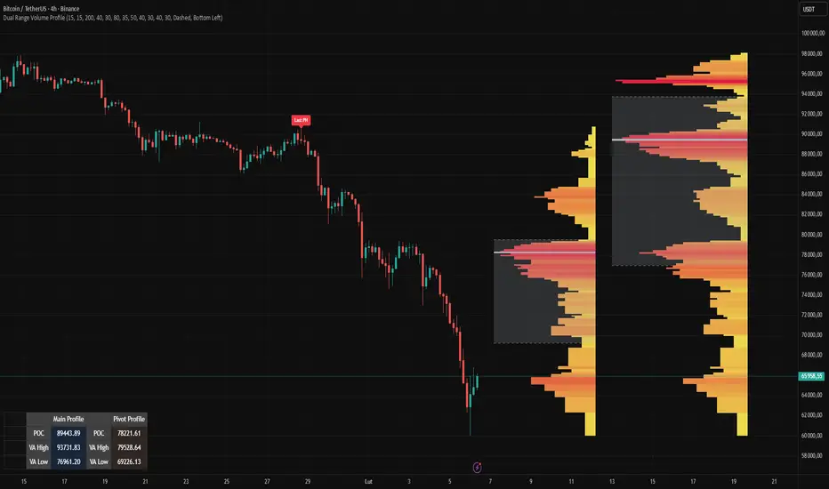 “Dual Range Volume Profile” is a volume analysis indicator that displays two independent volume profiles simultaneously: