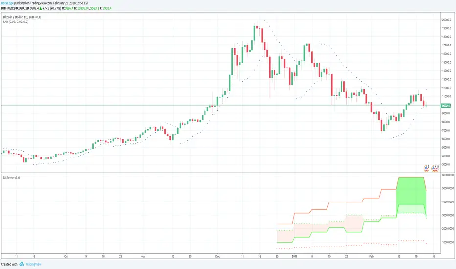 Whenever Bitsense shows a darker shaded colored area, that area then can be used as a launchzone for trades in the direction of the market. The same goes for areas where light and darker shaded areas are together. These represent strong market conditions