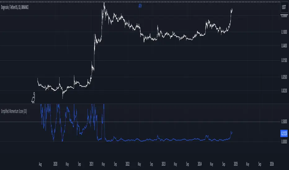 The Simplified Momentum Score indicator calculates the normalized price momentum of an asset over a user-defined period (e.g., 30 days). It provides a single actionable score between 0 and 1, making it easy to compare the relative strength of different tokens or assets: