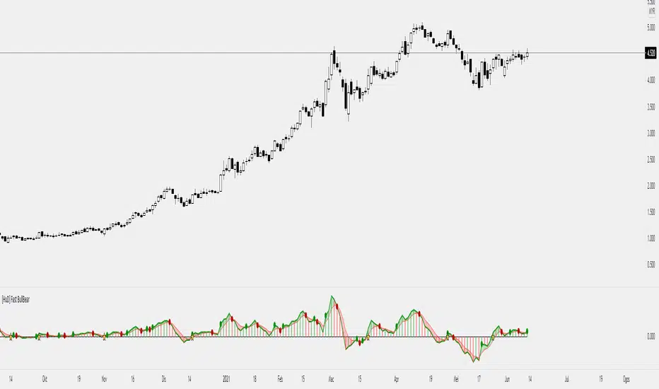 This indicator based on mathematical algorithm of 2 fast ema lines.