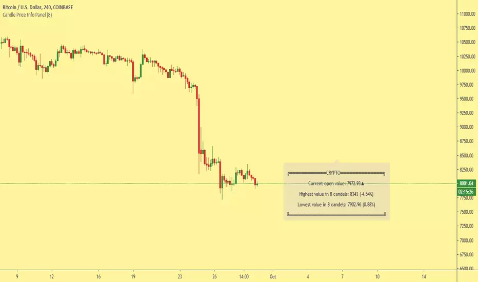 Info Panel that displays difference in percentages between current candle open value and highest/lowest wick values in past "X" number of candles