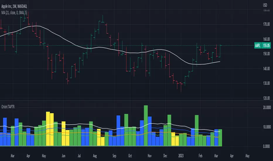 The TAPTR calculation is simple, it is the average for a set period of time of the HIGH - LOW.