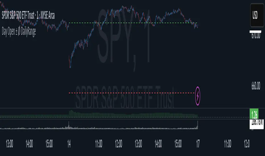 Average Daily Range (ADR): The script requests daily candles and computes the 10‑day simple moving average of the daily range (High–Low). This value remains constant throughout the trading day.
