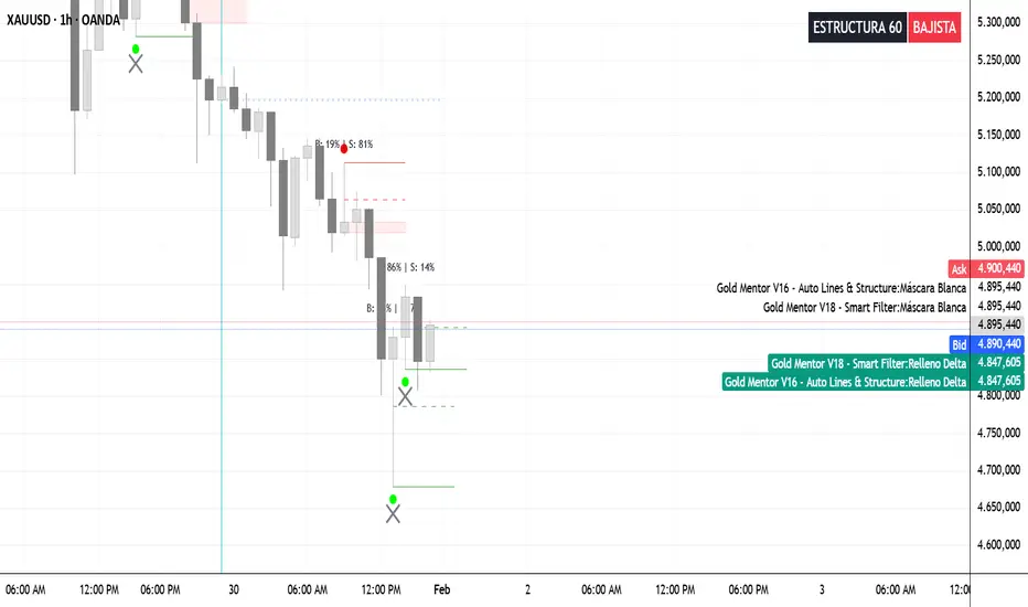 INTRODUCTION The Top-secret Golden Mentor is an institutional trading system engineered for surgical precision on Gold (XAUUSD) and other volatile assets. This indicator goes beyond simple entry signals; it automatically filters market traps (fakeouts) by aligning every volume anomaly with the macro market structure.