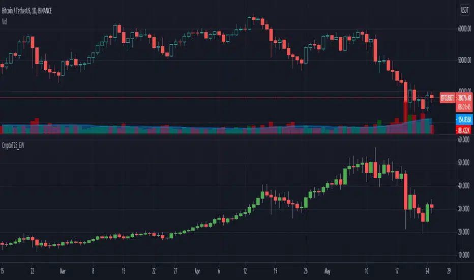 Draws an Equally Weighted Index of 25 securities. The inputs are pre-populated with the Top 25 cryptocurrencies by market cap at the time of publishing the script, but any 25 securities can be used.