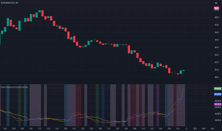 This indicator is designed to visually compare the current day's trading volume against the average trading volumes of 3, 5, and 10 days. It highlights certain conditions based on the comparison and provides alerts.