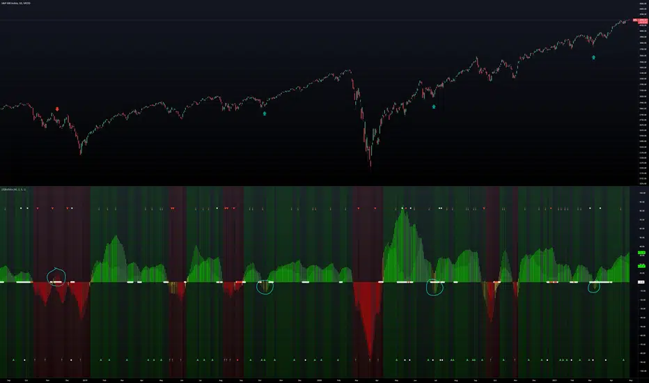 You'll notice that there are two separate oscillators that are laid on top of each other. The background oscillator is my "Tip-and-Dip" oscillator which you can see here (will refer to this as TnD from here), and the foreground oscillator from the Squeeze, which can be viewed here.