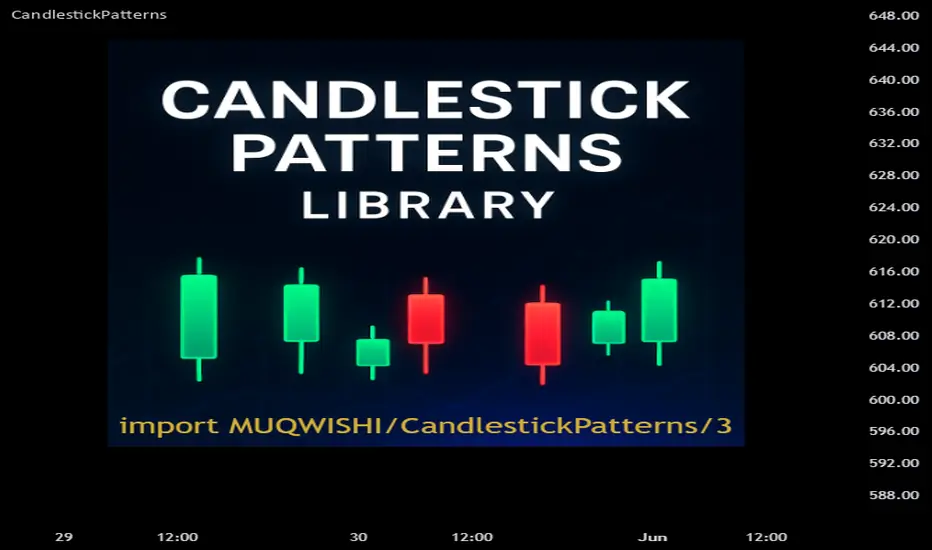 This library provides a wide range of candlestick patterns, and available for user to call each pattern individually. It's a comprehensive and common tool designed for traders seeking to raise their technical analysis, and it may help users identify key turning of price action in financial instruments. Credit to public technical “*All Candlestick Patterns*” indicator.