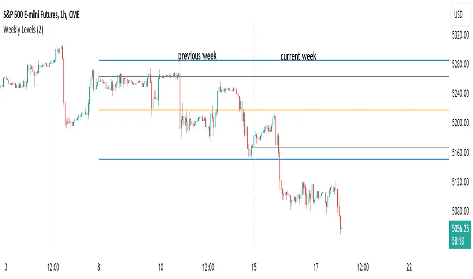 Indicator can be used on any timeframe, lower than weekly, for any type of instrument, including futures. It also provides an option to draw levels for any selected week back in time.