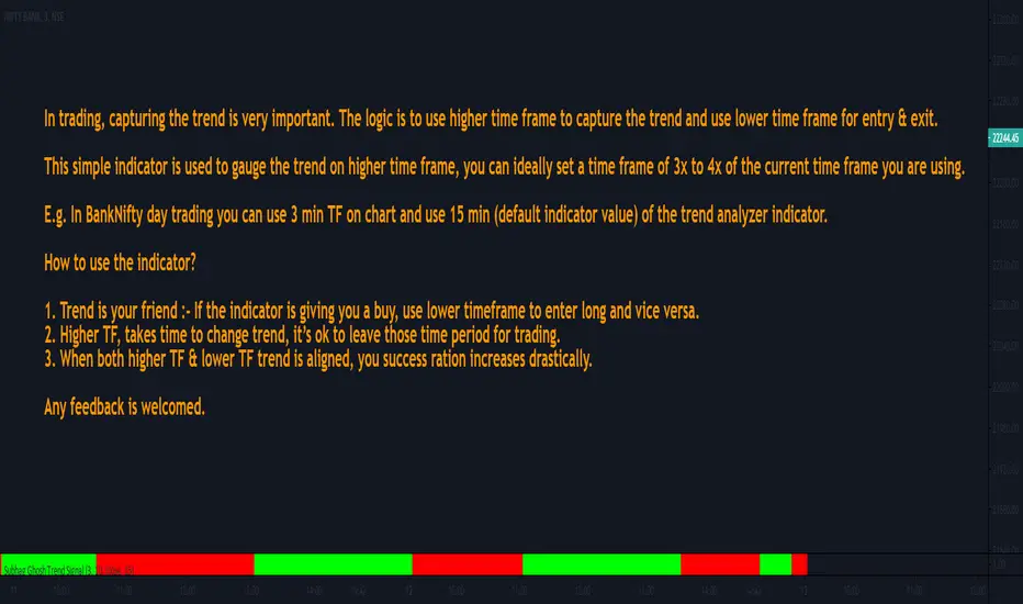 E.g. In BankNifty day trading you can use 3 min TF on chart and use 15 min (default indicator value) of the trend analyzer indicator.