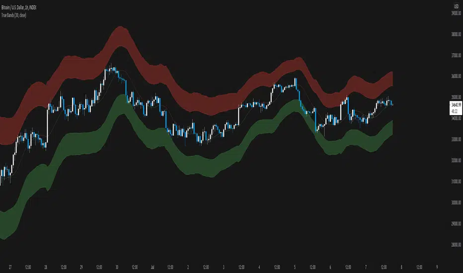 At the heart of True Bands is a moving average with improved timing and smoothness. Due to its adaptability to the trend by moving average, identifying overbought or oversold phases becomes extremely easy.